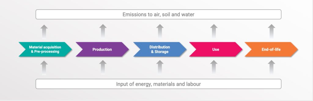 I en livscykelanalys undersöks varje steg för sig. På så sätt får man både fram vad som orsakar avtrycken i respektive steg och hur stora avtrycken är i respektive steg.