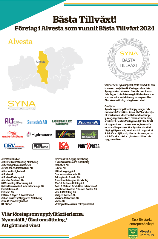 Viverk bland Alvestas bästa företag i Synas Bästa TIllväxt.